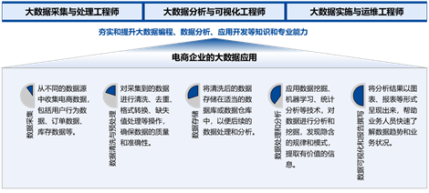 • 熟悉电商业务,掌握电商大数据分析技术、方法和流程。