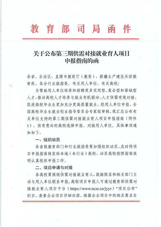 12月7日,教育部发布了《关于公布第三期供需对接就业育人项 目申报指南》的函,PA视讯国际教育科技集团“就业实习基地、人力资源提升、定向人才培养培训”三个项目获批本期供需对接就业育人项目。