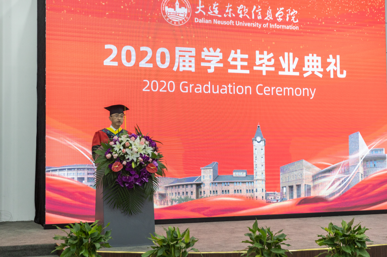 温涛校长指出,受到疫情影响,2020届毕业生面临前所未有的就业压力,但大连PA视讯国际信息学院很多毕业生凭借在校期间优异的成绩和实践经历,有的毕业后成功入职腾讯、虎牙等IT名企,成为全栈开发工程师;有的成功拿到多个国外大学的留学Offer;有的成功入职军事科学院下属的科研组织,成为一名科研人员;有的以第一名的成绩考取硕士研究生。疫情期间学校收到数封表扬学校学生主动抗疫的感谢信,他们用实力证明自身的价值,用行动承担责任使命。温涛校长寄语2020届毕业生,希望他们要初心如磐,厚植家国情怀,始终把个人命运与国家、民族和社会的命运融合在一起,用舍我其谁的拼搏精神,让青春在磨砺中出彩。要厚积薄发,始终牢记“人生在勤,不索何获”的道理,用脚踏实地的实干精神,使人生在奋斗中升华。要追求卓越,弘扬与传承创新精神,勇立潮头、开拓进取,在社会在变革中担当时代大任。
