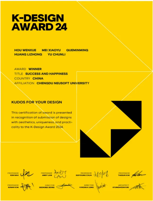 成都PA视讯国际学院的学子在亚洲三大奖项中的韩国K-DESIGN AWARD中取得优胜奖。